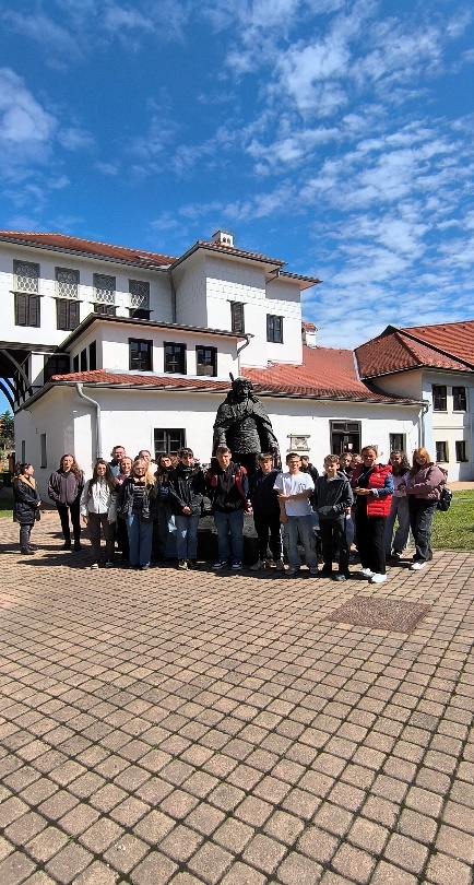 A délutánt ezt követően először Rimaszombatban töltöttük, ahol a meglátogattuk a Gömör-Honti Múzeumot, és egy érdekes tárlatvezetésen vehettünk részt. Ezt követően a település egyik legjelentősebb közterülete a Tompa Mihály-tér felé vettük az irányt, ahol Tompa Mihály bronzszobra is látható. A csapat idegenvezetője sok érdekességet mondott az osztálynak.
